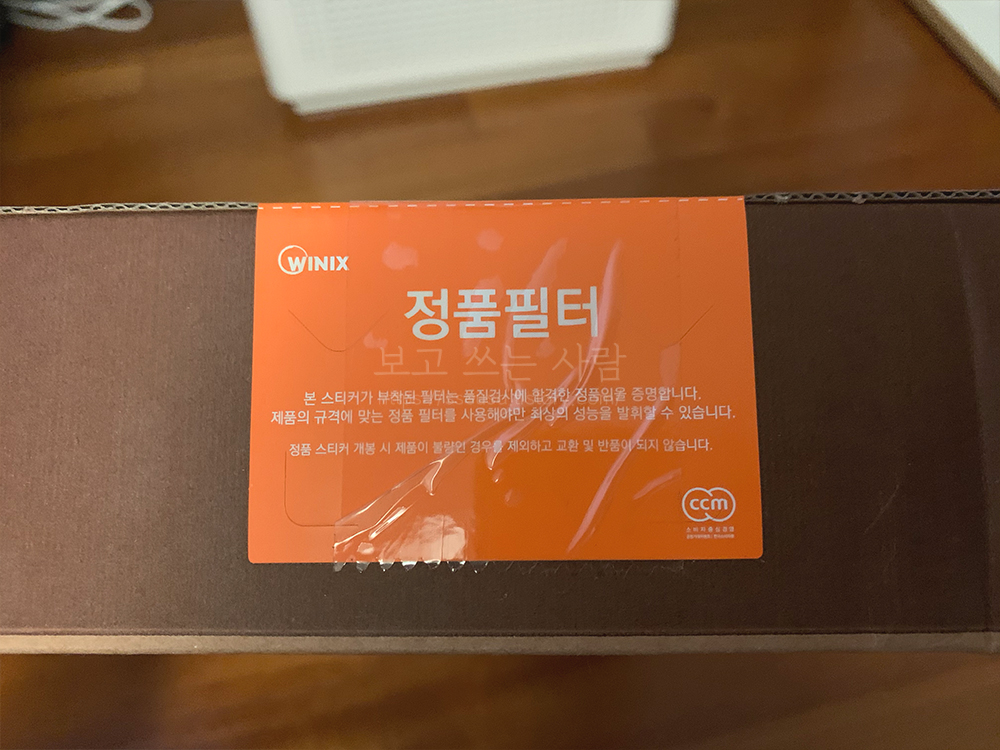 박스는 위닉스 정품 필터 인증 스티커로 봉인되어 있다.