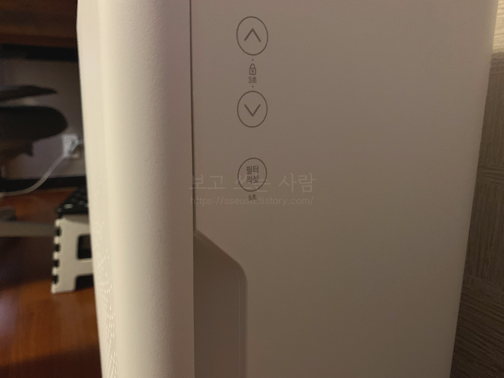 필터 교체가 다 끝났으면 이제 마지막으로 본체 오른쪽에 필터 리셋 버튼을 5초 정도 꾹 눌러주면 된다.