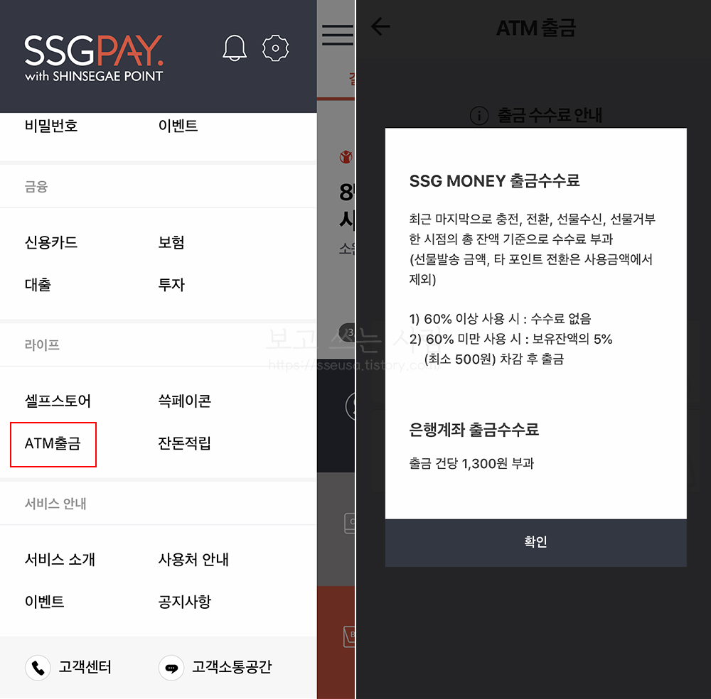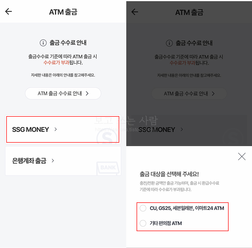 다음으로 가장 중요한 ‘현금화’의 방법은 이 쓱페이 머니를 ATM에서 출금하는 것이다.