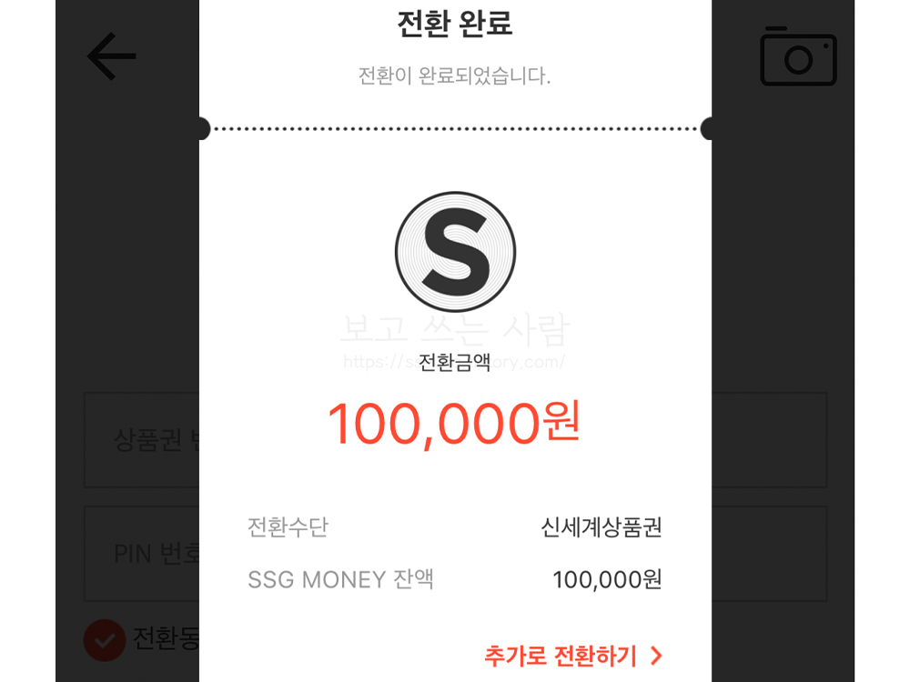 상품권이 더 있다면 ‘추가로 전환하기’를 눌러서 앞서 했던 과정을 다시 거쳐주면 된다.