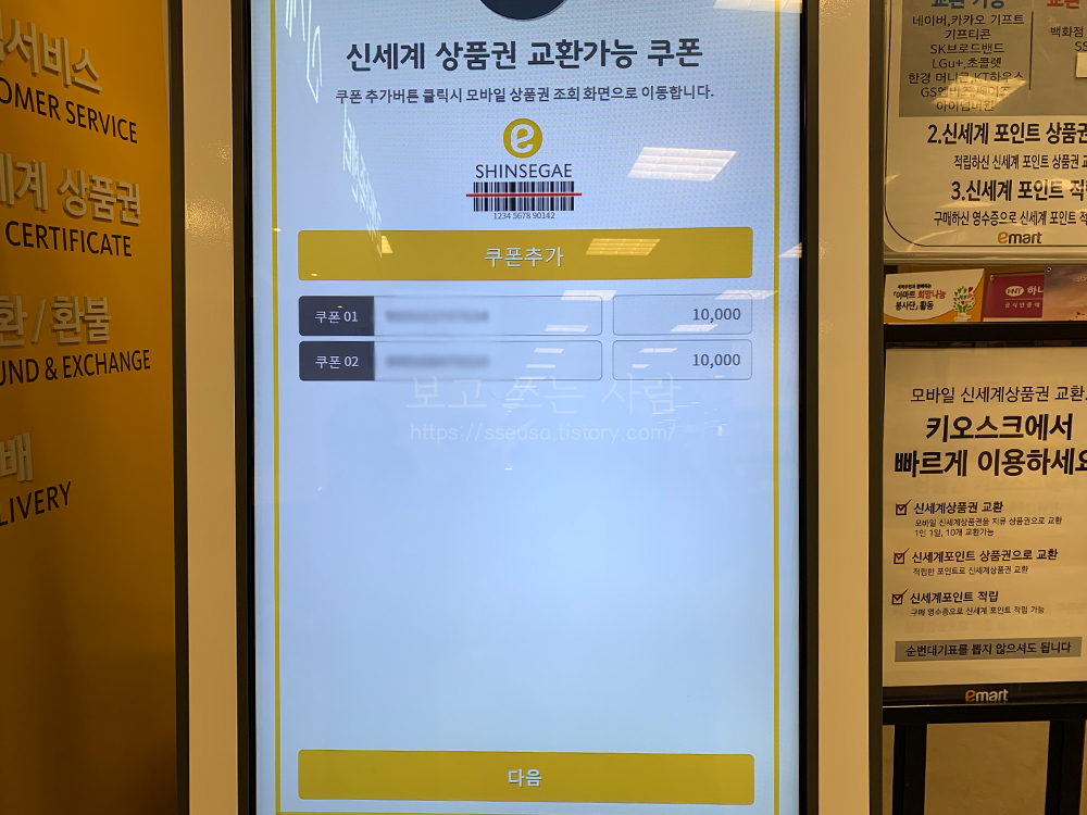 실제로 직접 해보면 화면에 안내되는 데로 따라 하면 돼서 그리 어렵지 않고, 혹시 문제가 생기더라도 상품권 판매 데스크 바로 옆이라 직원분께 말씀드리면 해결된다.